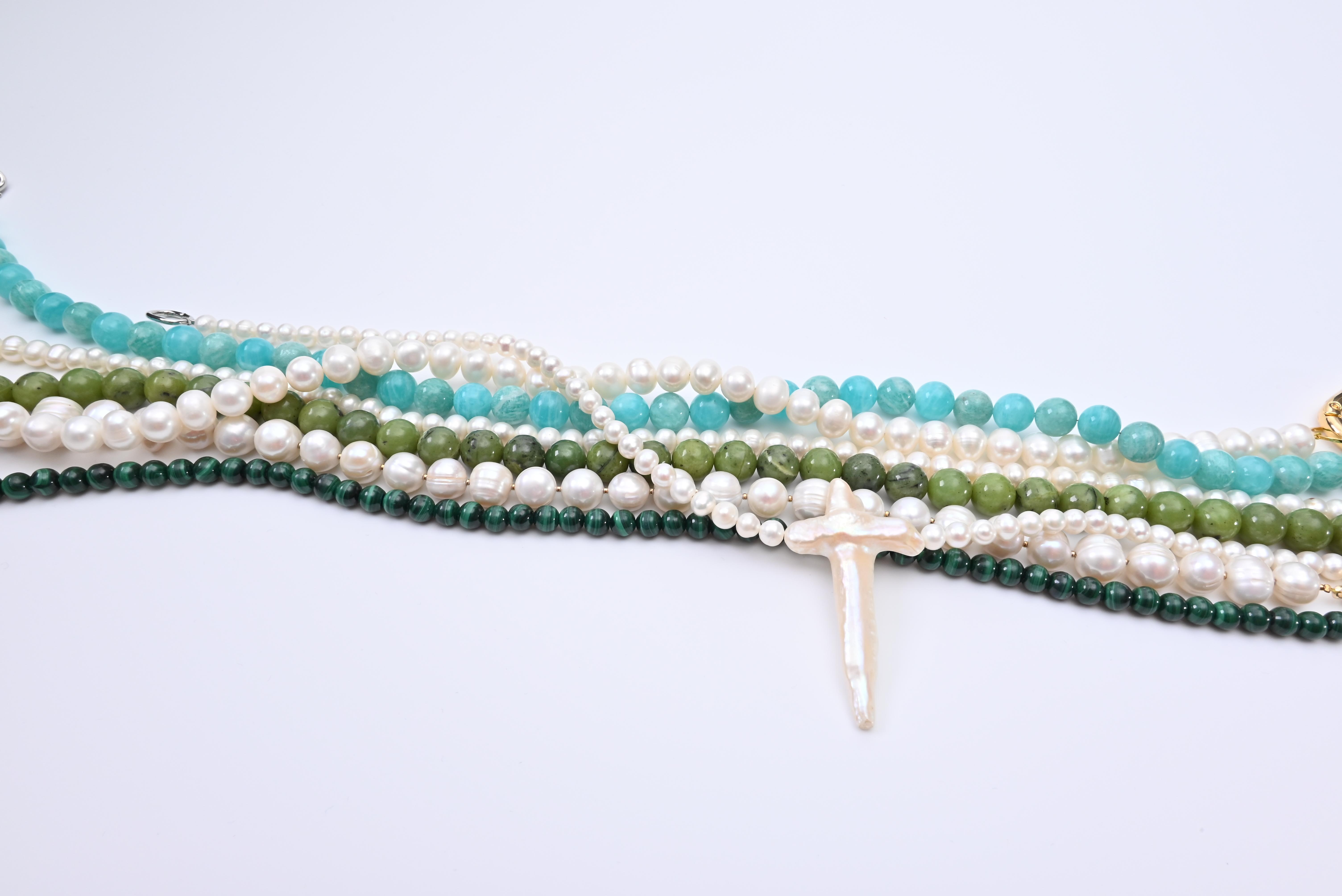 Главные герои: Чокер выполнен из жемчуга с акцентным крестом из натурального жемчуга. 📏 Размер: с учетом массивного радированного замка от 40 см до 42см. Мы поможем с размером, если потребуется увеличить. Как носить: С кружевным платьем для контраста грубоватой текстуры. С кожей и денимом в стиле urban tribes. С базовой или рваной футболкой.