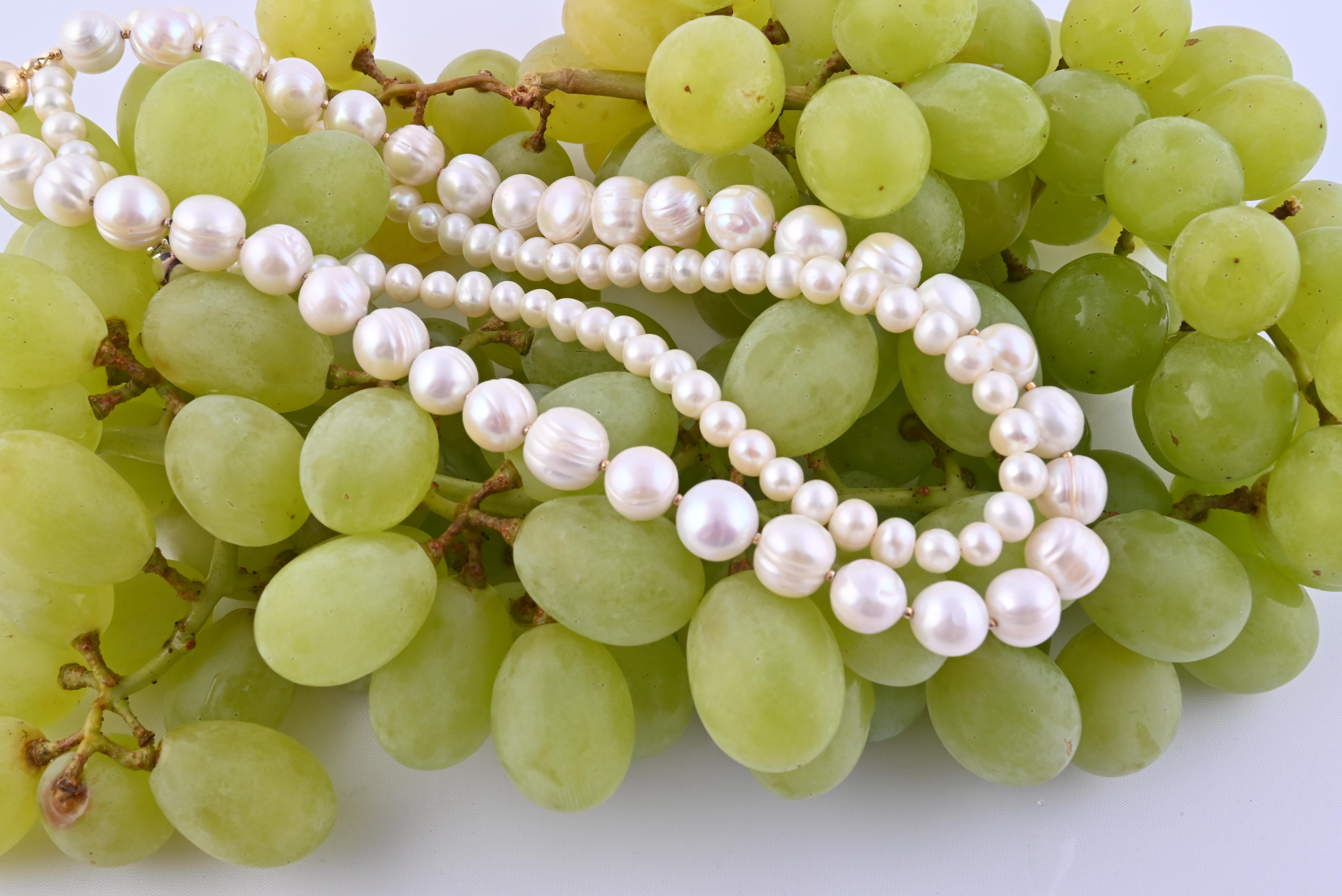 Главные герои: Крупные бусины из натурального жемчуга. 📏 Размеры: От 45 до 50 см Как носить: Вечер: с декольтированным платьем — жемчуг «играет» при свете. Повседневность: с рубашкой навыпуск и джинсами — для стиля «небрежный шик».