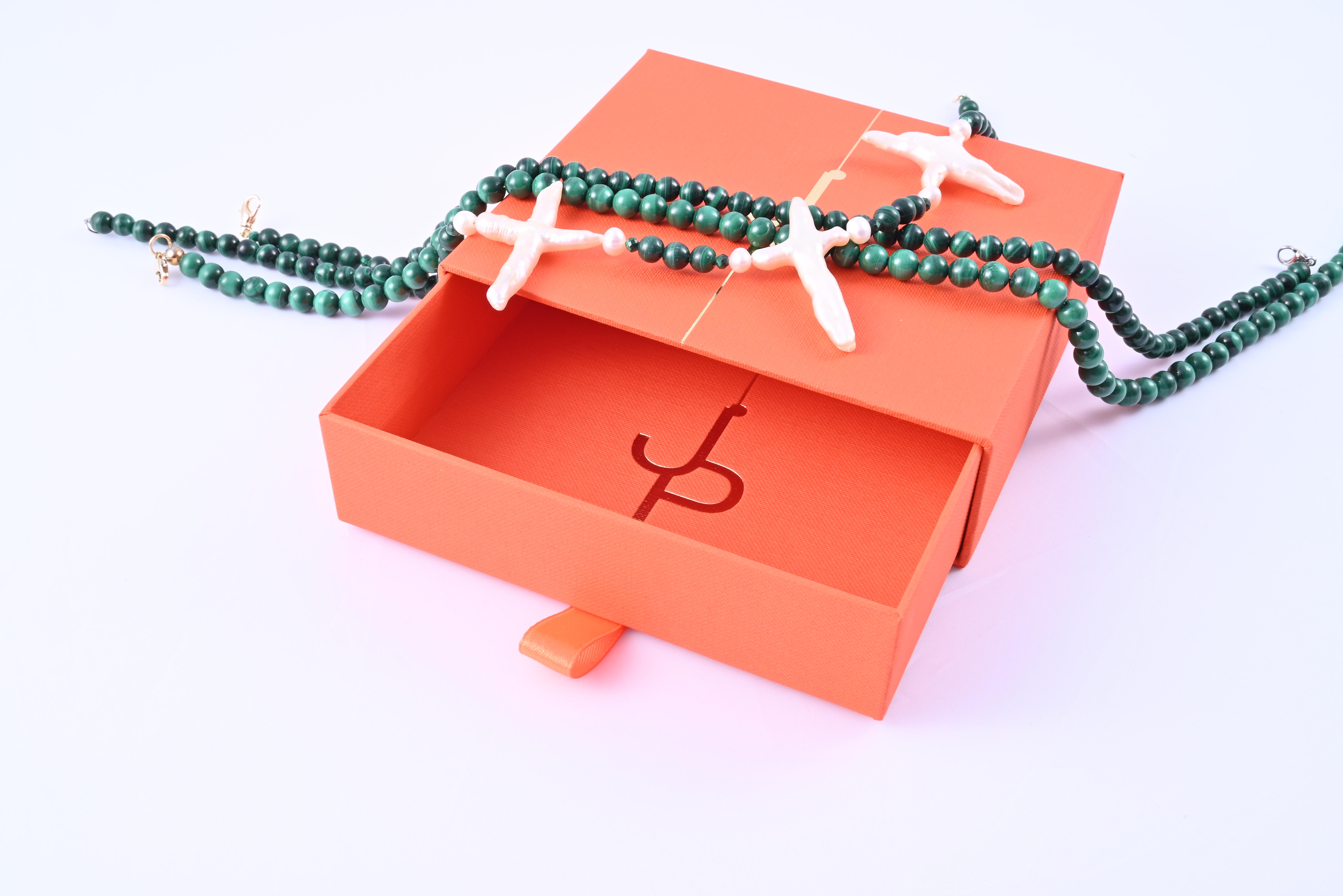 JP | Сет чокер из малахита и барочного жемчу...