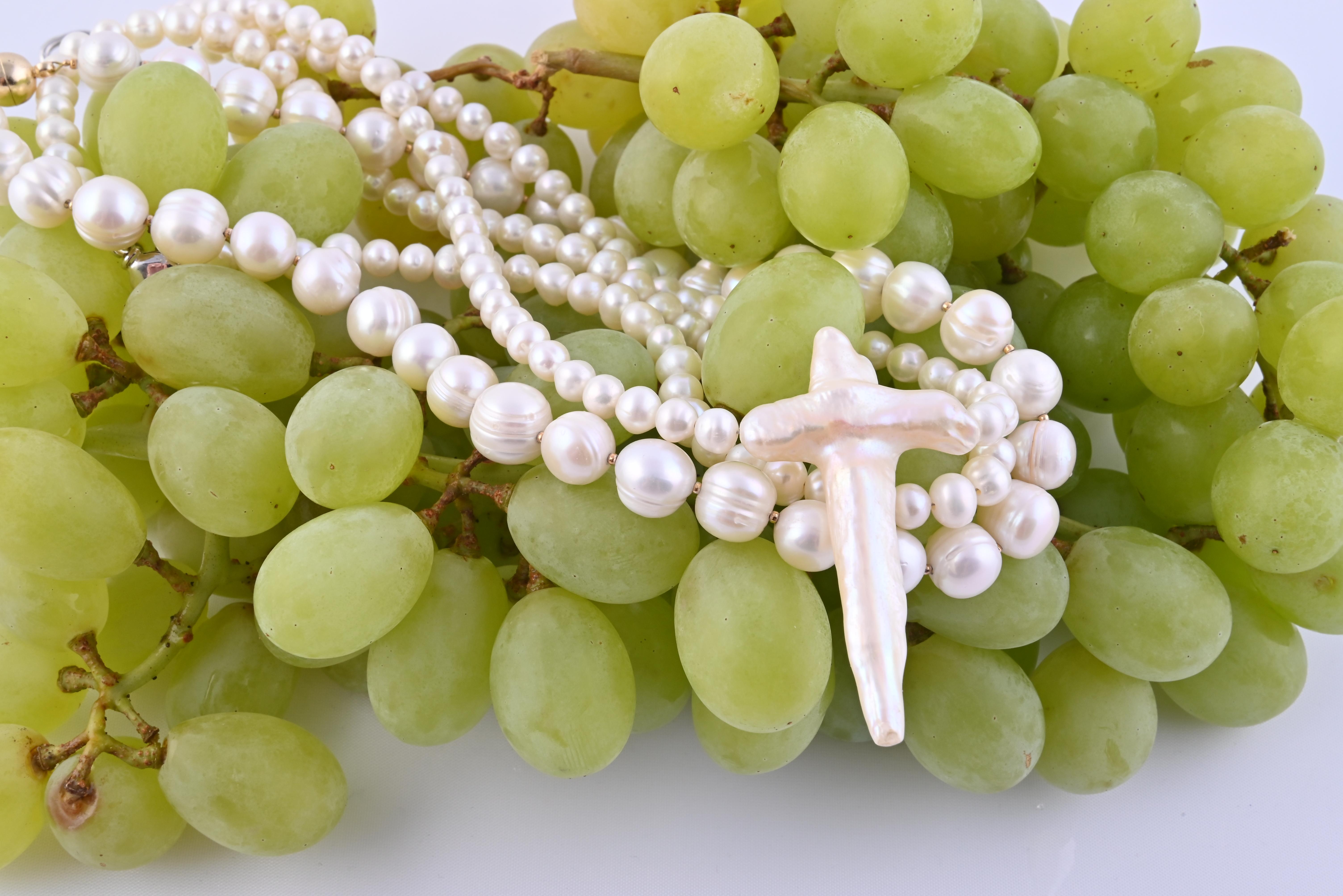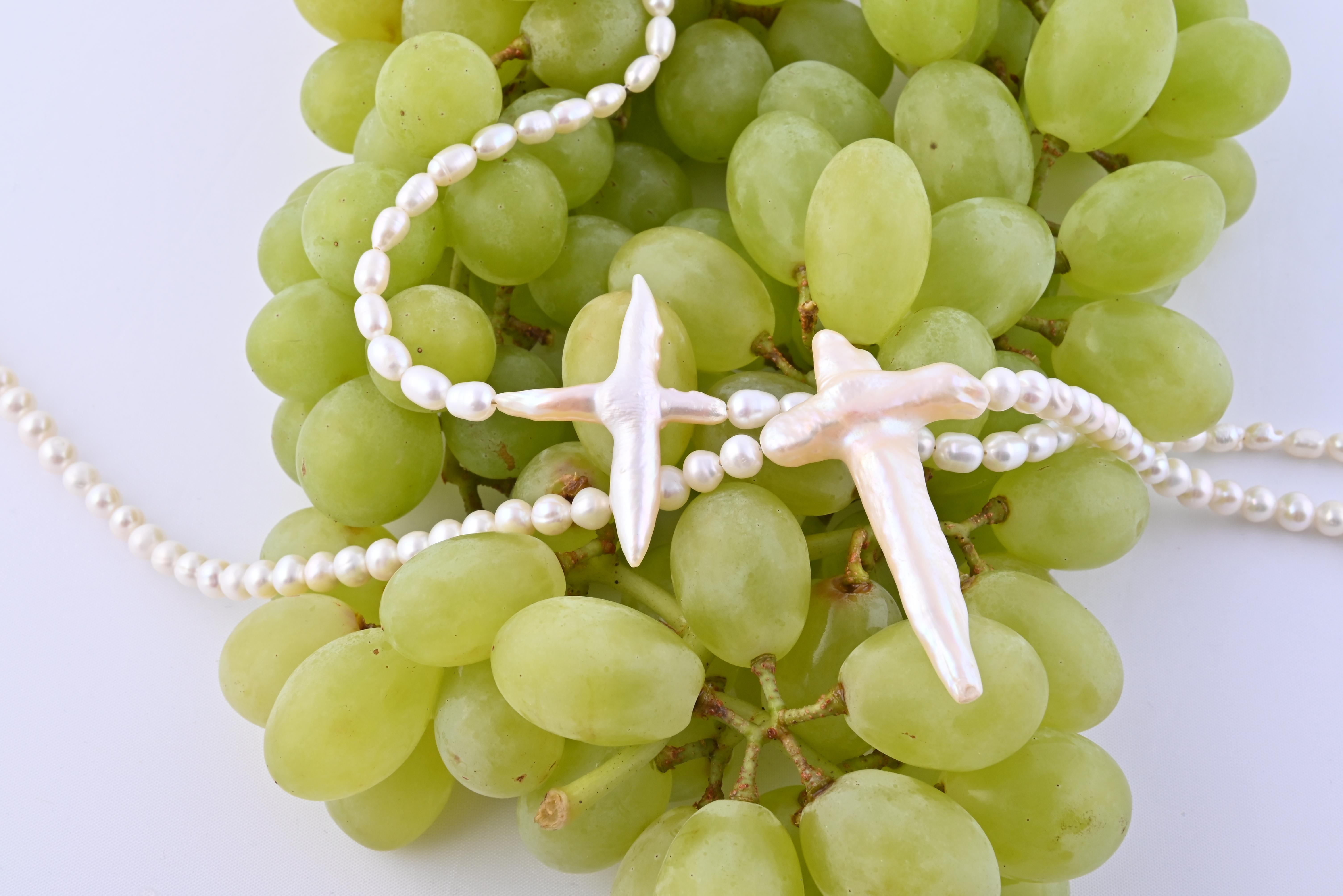 Главные герои: Чокер выполнен из жемчуга с акцентным крестом из натурального жемчуга. 📏 Размер: с учетом массивного радированного замка от 40 см до 42см. Мы поможем с размером, если потребуется увеличить. Как носить: С кружевным платьем для контраста грубоватой текстуры. С кожей и денимом в стиле urban tribes. С базовой или рваной футболкой.