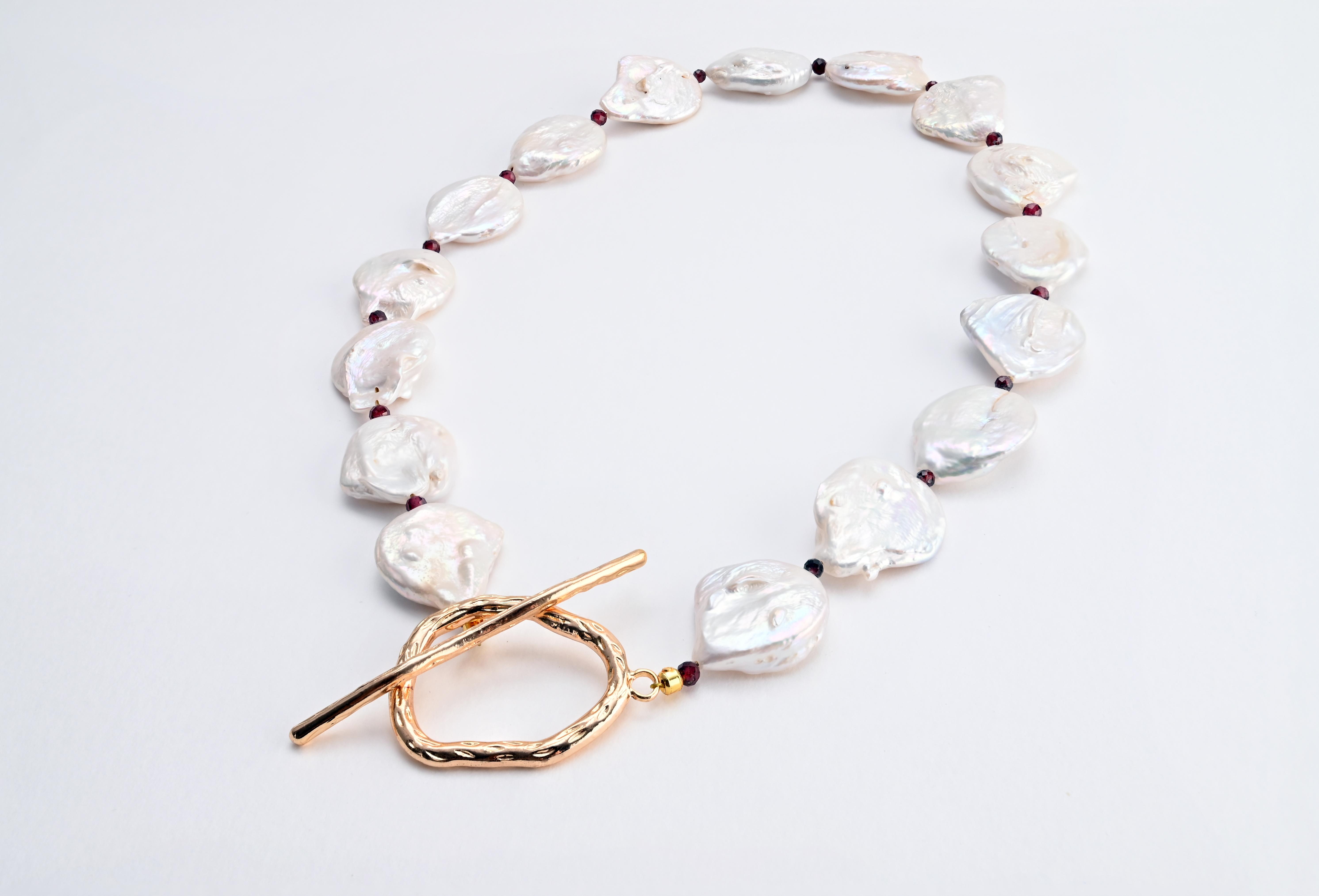Жемчужная капля с позолотой — как личный арт-объект. Крупный барочный жемчуг в форме капли с массивной застежкой из позолоченного металла наш абсолютных хит и любимец среди покупателей! Акцент между жемчужин бусины граната. Вместо граната мы можем предложить камень на замену, по вашему запросу. 📏 Размеры: От 45 до 50 см Почему его любят? → Универсально: от офиса до вечера → Индивидуально: вместо граната можем вставить ваш камень (шпинель, рубин, даже лазурит) → Узнаваемо: этот дизайн просят повторить снова и снова